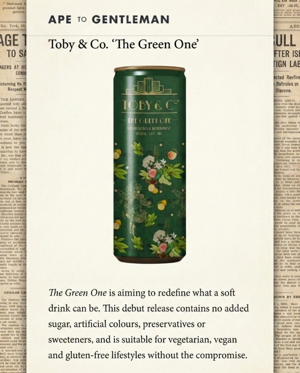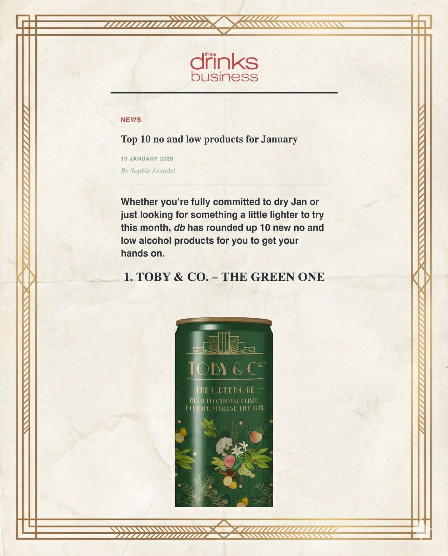 New British soft drink brand Toby & Co. has launched its debut expression, The Green One, positioned as a functional, botanical alternative within the no-and-low space.